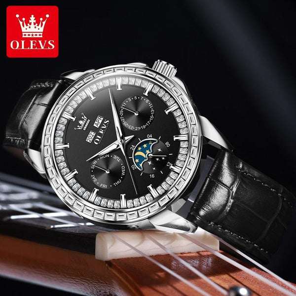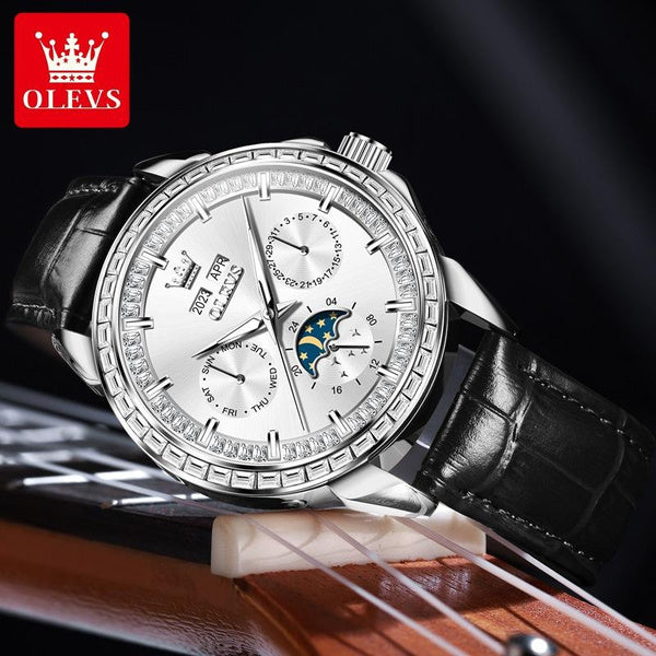 • 달의 위상 표시와 주 표시가 있는 다기능 디자인을 특징으로 하며, 어두운 곳에서도 쉽게 읽을 수 있도록 빛나는 바늘이 추가되었습니다.