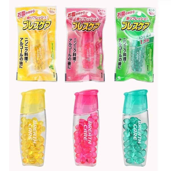 고바야시 브레스케어는 민트와 레몬 두 가지 맛으로 제공되는 구강 건강 보조제