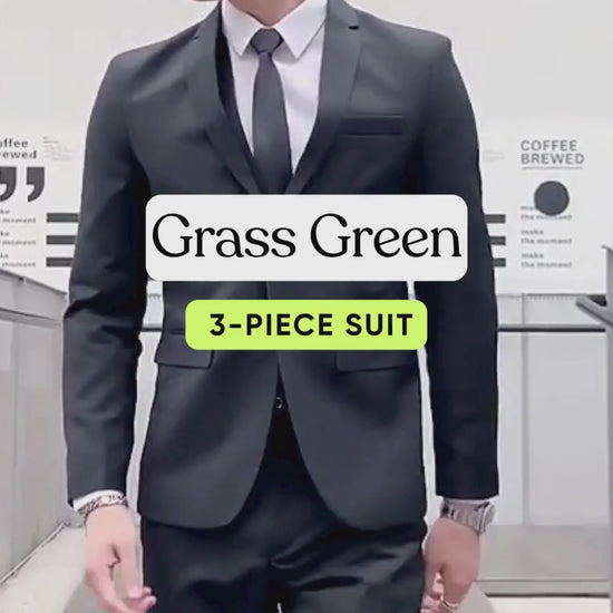 Men's Plus Size Grass Green 3-Piece Suit – Wedding, Formal Event, Performance, Host Tuxedo Set