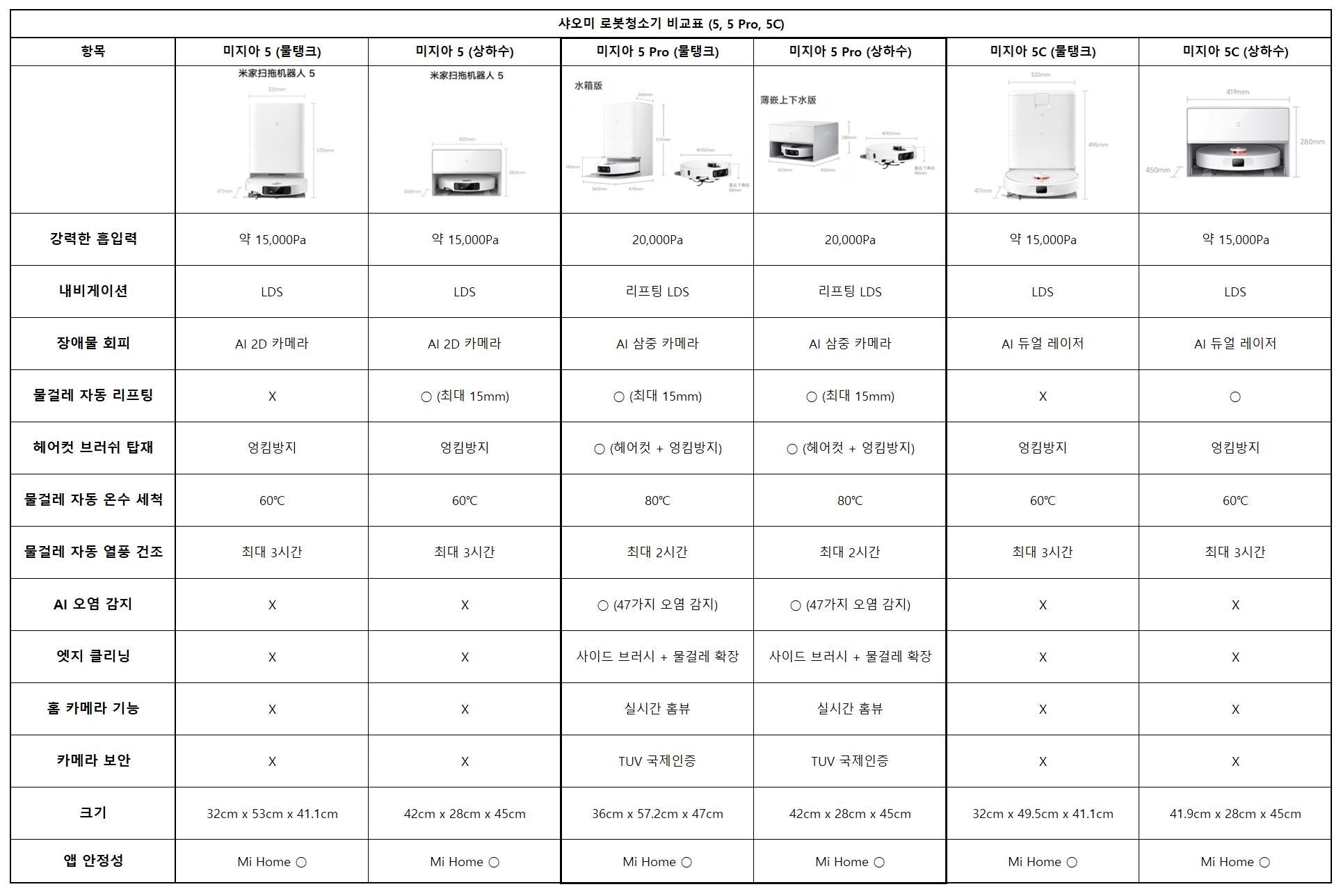 • 자율 스테이션 기능이 업그레이드되어 핫워터 청소(80℃), 자동 물 교체 & 세제 투입 기능 등이 포함된 모델도 존재합니다.