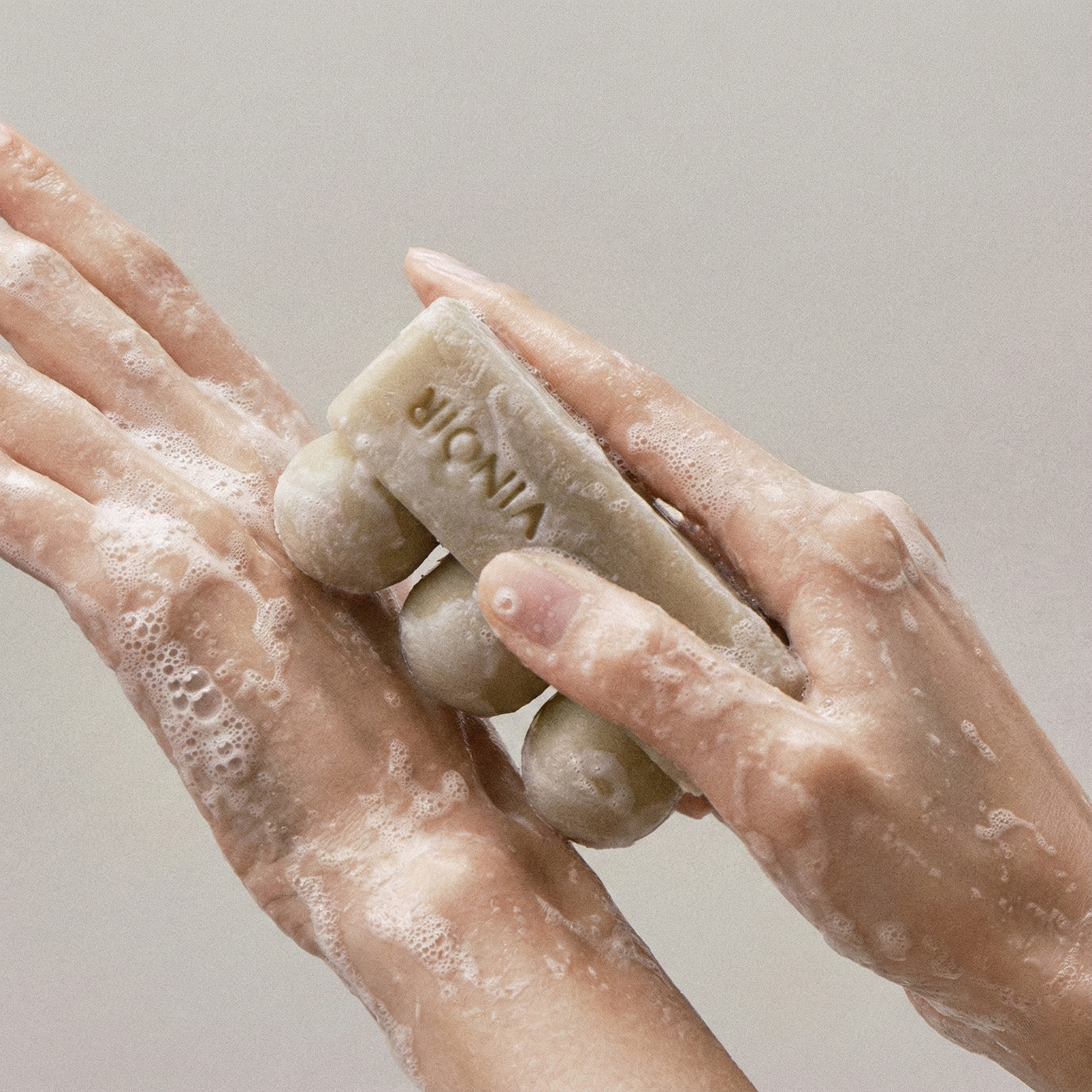 A mildly acidic shampoo bar that supports the scalp’s natural health with soft, rich lather and massage balls.