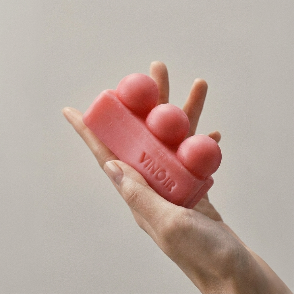 1. Gently massage lymph nodes or tense areas using the massage surface, creating a rich lather as you go.