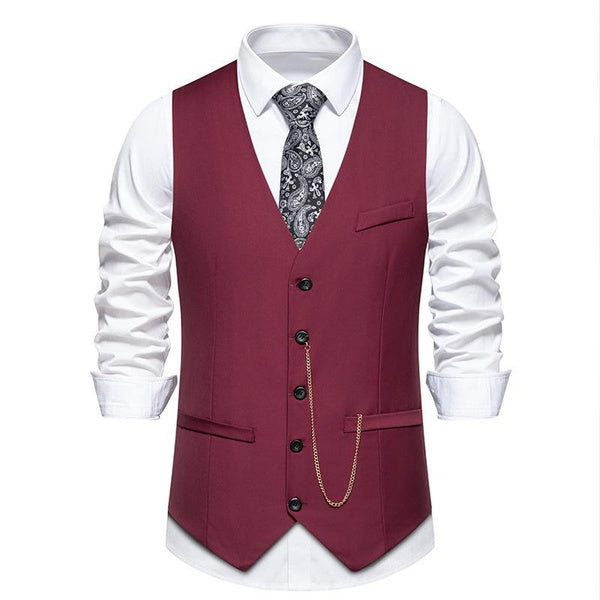 • Features a classic V-neck design and a sleek single-breasted closure, perfect for creating a sophisticated layered look for weddings and formal gatherings.