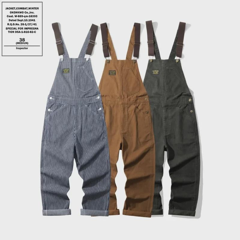 • Inspired by 1920s-1930s workwear, featuring a classic railroad stripe pattern and detachable vintage-style straps for authentic Amekaji appeal.