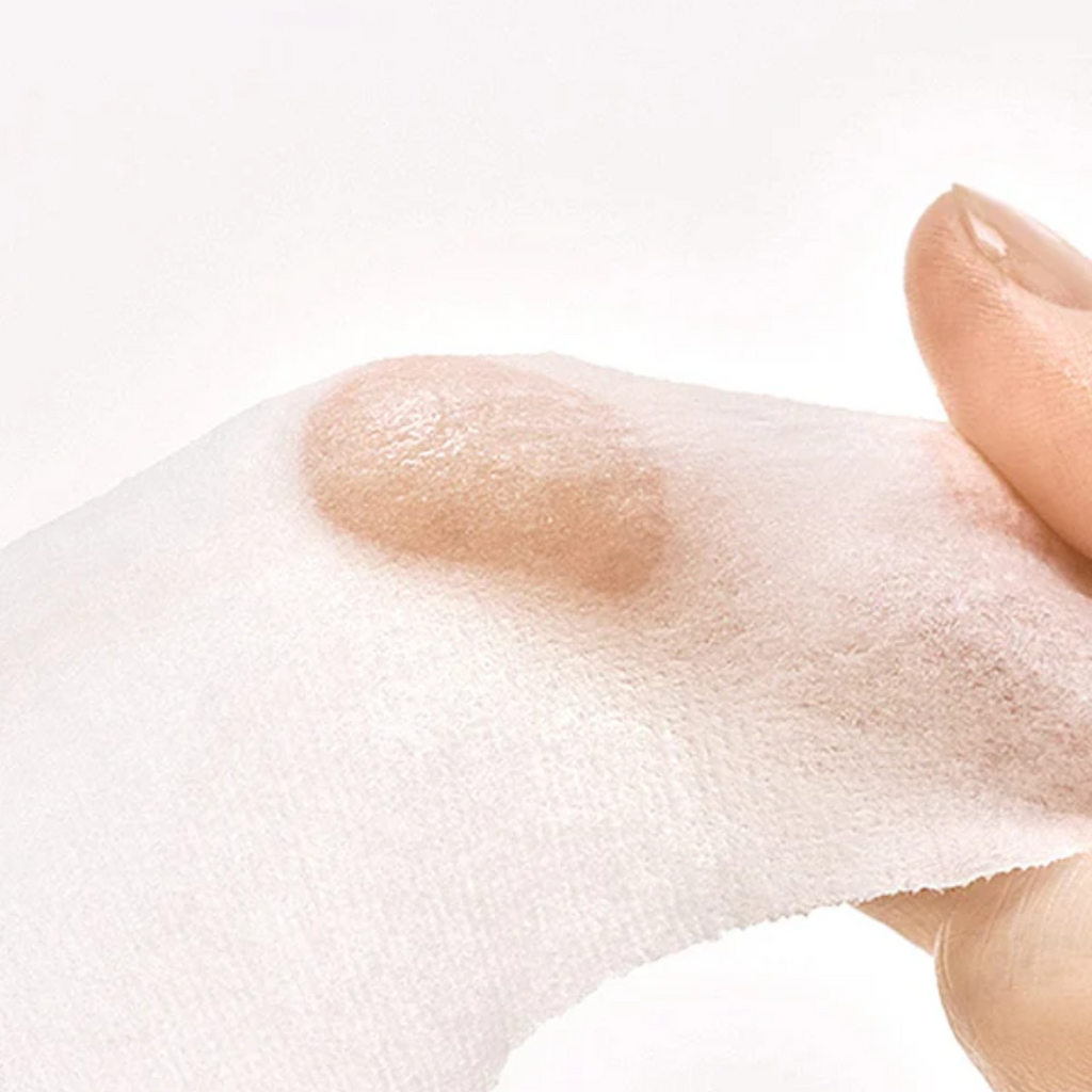 - Microfiber material derived from plant extracts gently adheres to skin.